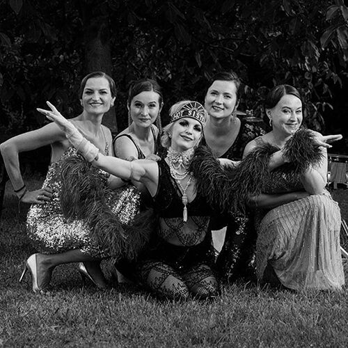 HOT SISTERS – dámská pěvecká kapela s tanečnicí Ritzy Pitzy, která se zaměřuje na jazz a swing let 20.-40. Perly evergreenů i covery moderních songů.
